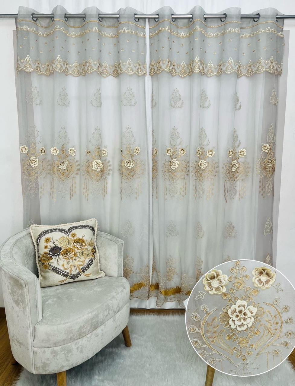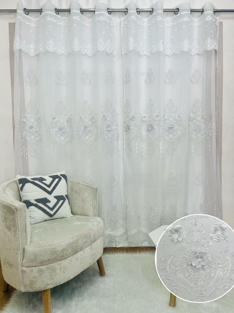 VELO BORDADO EN ALTO RELIEVE CON ARGOLLA Y CENEFA